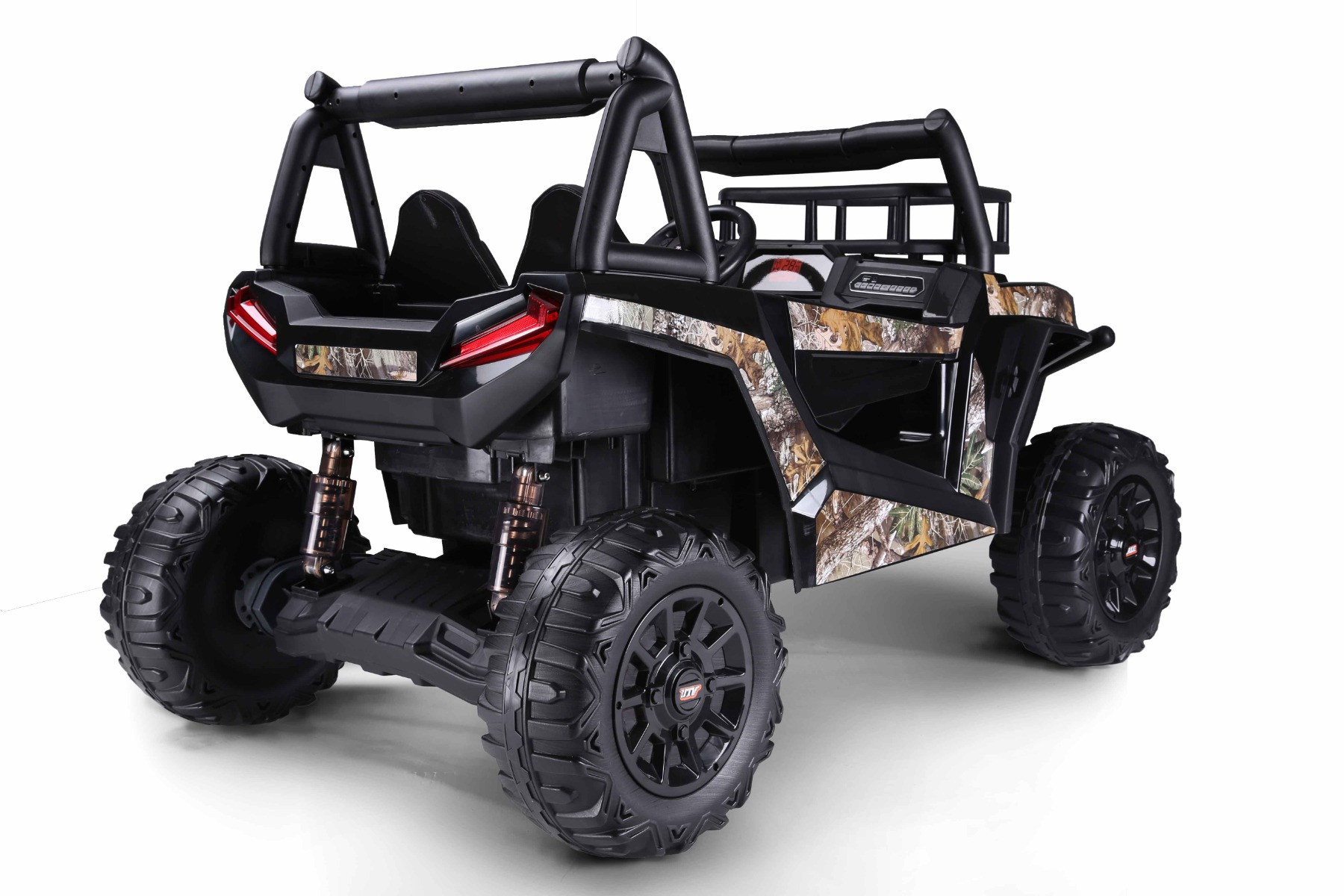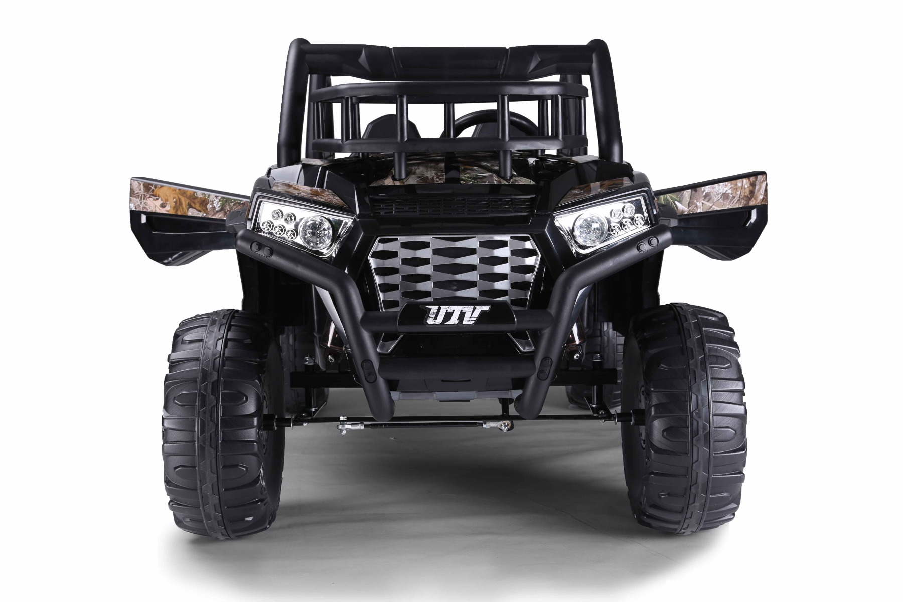 La voiture autoportée UTV a un look puissant, des portes qui s'ouvrent, 2 espaces de rangement, des matériaux et une finition de qualité. Elle dispose de deux sièges en similicuir, ce qui la rend adaptée pour deux enfants.